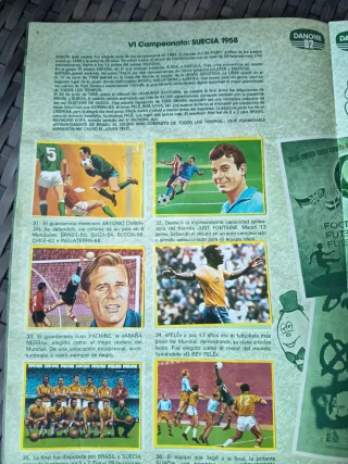 Vendo álbum clásico de cromos "Fútbol en Acción" Danone 1982 (promoción Mundial España 82 con Naranjito). Colección de 96 cromos totales: ¡tengo 91 pegados! Faltan 5. Incluye joyitas como Diego Maradona, Pelé con trofeo, Alfredo Di Stéfano, Yashin, Cruyff, Beckenbauer y estrellas del Mundial. Estado vintage usado: portada con marcas normales del tiempo, colores vivos, páginas conservadas. Ideal para coleccionistas de cromos antiguos, Mundial 82 o nostalgia 80s. #FutbolEnAccion #Danone82 #CromosVintage #Mundial82 #Maradona #Naranjito #CromosFutbol #Coleccionismo #Pelé #DiStefano #Madrid #SegundaMano #España82 #FutbolVintage