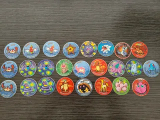 Colección de tazos de Pokémon de las series Tazos, Tazos 2 y Tazos 3 En estados variados Alguno plastificado para proteger su estado (se puede quitar fácilmente)