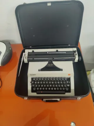 Máquina de escribir Vintage portátil OLYMPIA Regina de Luxe, modelo traveller. - Diseño clásico en color blanco y negro. - Incluye su maletín de transporte original.