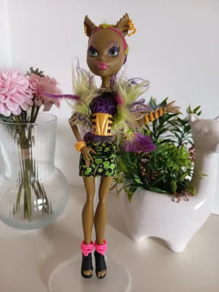 Muñeca Monster High Clawvenus de la colección Fusión Freaky. Ver fotos!!!!!! - Pelo con mechones verdes y morados. - Vestido con estampado de leopardo. - Accesorios naranjas en brazos y piernas.