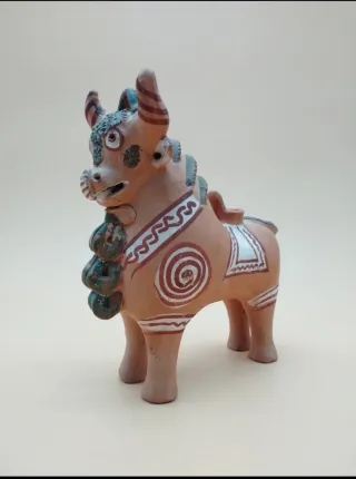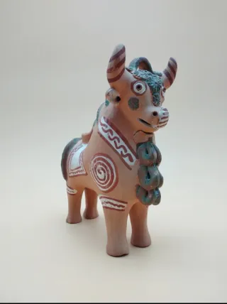 Auténtico Torito de Pucará de cerámica, elaborado artesanalmente siguiendo la tradición andina de Perú. Esta pieza de marcada expresividad y colores tradicionales se utilizaba como amuleto y conserva una esencia simbólica de protección y prosperidad. Muy buen estado general. Mide 21'5cm de alto x 18cm de largo. Si necesitas más fotos o tienes cualquier pregunta no dudes en ponerte en contacto conmigo!! 🤠 En mi perfil encontrarás más objetos de colección, curiosidades y antigüedades. ¡No dudes en echar un vistazo! ✨💫 Coleccionismo Glowback Antigüedades Vintage Retro Figuras Antiguos Arte Perú Hispanoamericana precolombino