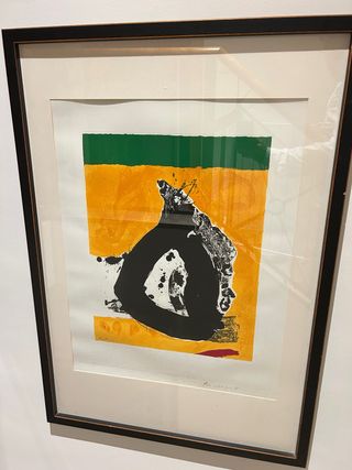 imagen muestra una serigrafía en color titulada "Untitled (No. 12)" de la serie The Basque Suite (1971) del artista estadounidense Robert Motherwell. Es una serigrafía sobre papel J.B. Green, publicada por Marlborough Graphics, Inc., Londres/Nueva York, e impresa por Kelpra Studio, Londres. La obra presenta las formas gestuales negras características de Motherwell, complementadas con bloques de color monocromático, en este caso, naranja y verde. Fue creada en una edición limitada, típicamente de 150 copias, y las impresiones están inicialadas y numeradas a lápiz.