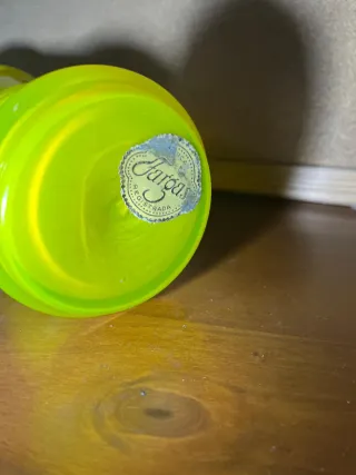 Jarrón de cristal de color verde lima, con un diseño moderno y elegante. La etiqueta Fargas Registrada está adherida en la base. - Material: Cristal. - Color: Verde lima. -obra de arte