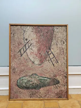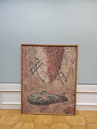 Óleo sobre lienzo de gran formato 115 x 89 cm. ( Lienzo) obra perteneciente a una serie numerada de autor español no identificado, activo en el contexto del expresionismo simbólico de la posguerra tardía. Lenguaje pictórico gestual y matérico, con iconografía orgánica y simbólica. Producción profesional, propia de circuitos de galería de los años 70–80. Procedente de fondo patrimonial en Madrid. Cuadro grande, pintura original, óleo sobre lienzo, arte contemporáneo, arte moderno, expresionismo, abstracto figurativo, decoración salón, cuadro para despacho, interiorismo, galería, colección privada, pieza única, vintage años 70
