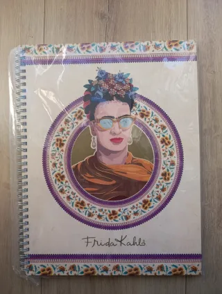 Conjunto de dos cuadernos sobre la icónica artista Frida Kahlo. Ideales para amantes del arte y la cultura. - cuaderno 1: Portada con ilustración de Frida y marco floral. - cuaderno 2: Frida Querida con diseño moderno de la artista. Nuevos. Con envoltorio. Sin uso
