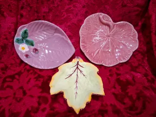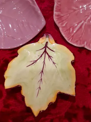 Conjunto de tres pequeñas fuentes decorativas con forma de hoja. Todas selladas. Inglesas - Una fuente es de color rosa pálido con relieve de hoja. - Otra fuente es de color lila con detalles de fresas y flores. - La tercera fuente es de color verde claro con borde amarillo y detalles de nervaduras. En mi perfil podrás encontrar. Antiguo antigua antigüedad vintage retro artdeco modernista antiguos antiguas restauracion 20 30 40 50 60 70 80 90 China japonés bristol francés italiano limoges bavaria arte oleo pintura acuarela firma Decoración rustica shaby chic industrial escaparatismo atrezzo rebaja ganga regalo Porcelana Castro