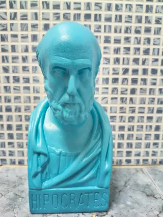 Elegante busto decorativo de Hipócrates, figura clásica inspirada en el padre de la medicina. Fabricada en material resistente y acabada en un llamativo color azul turquesa, ideal para dar un toque original y moderno a cualquier espacio. Perfecta para: Decoración de hogar u oficina Consultas médicas, clínicas o farmacias Estanterías, escritorios o librerías Regalo original para amantes de la medicina, filosofía o arte clásico Figura decorativa en forma de busto de Hipócrates. El color es un llamativo azul. Decoración de salon ,estantería,soporte de libros,ideal regalo para un medico