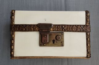 Bonito y antiguo joyero 100% artesanal, de los años 40 o 50. Interior forrado con tela de pana y tiene dos compartimentos. Con bonito cierre, funciona muy bien pero no tengo la llave. 16x9x10 cm Antiguo antigua antigüedades arcopal art nouveau brocante mueble mimbre bambú ratán cerámica decó colonial contraste hand made artesanal latón duralex lámpara espejo opalina madera colonial boho chic metalarte shabby sol murano Manises marco xix modernista porcelana industrial oro plata de ley dorado cuadro arte interiorismo silla entrada retro vintage moderno campo rural playa