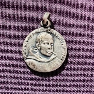 Medalla devocional antigua de Francisco Palau O.C.D. (Carmelita Descalzo, fundador de las Carmelitas Misioneras y de las Carmelitas Misioneras Teresianas). 🔸 Con reliquia ex indumentis en el reverso 🔸 Tamaño aprox. 2 cm 🔸 Buen estado de conservación 🔸 Pieza de coleccionismo religioso Ideal para coleccionistas de arte sacro y devociones carmelitanas. -------- Art sacre, Francesc Palau