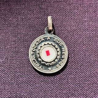 Anverso: Santa Rita de Casia con leyenda “SANTA RITA R.P.N.” (Rogad por Nosotros). Reverso: Sagrado Corazón de Jesús con leyenda “SAGRADO CORAZÓN DE JESÚS R.P.N.”. Material: metal plateado (aleación), sin contraste. Época: finales del siglo XIX – primeras décadas del siglo XX (ca. 1890-1930). Medida: aprox. 2 cm de diámetro. Estado de conservación: bueno, con señales de uso y pátina propia de la antigüedad. Ideal para coleccionistas de medallas devocionales o como objeto de devoción popular. ------ Art sacre, arte sacro, art devocional