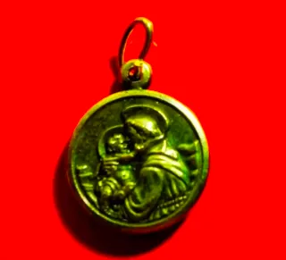 Medalla antigua de plata con la imagen de San Antonio de Padua. Antigua medalla devocional realizada en plata, datable a finales del siglo XIX – primeras décadas del XX. Prob. San Antonio de Padua. La pieza conserva parte de su aro original y muestra un desgaste homogéneo propio de la edad y del uso devocional. Borde perimetral dentado típico de las medallas francesas y catalanas de esa época. Pieza ideal para colección de arte sacro, numismática religiosa, amuletos antiguos o joyería devocional.