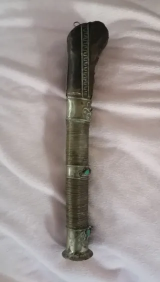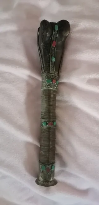 Kangling tibetano de Nepal, datado en el siglo XIX. Se trata de una trompeta utilizada en el budismo tibetano para invocar deidades, disipar fuerzas negativas... Con adornos de turquesas y coral. Parte inferior algo despegada. Meddias: 28 cms Tags: etnico africano arte trincheras arte sacro altar benditera obradearte tapies vara mando barcelona pintura mundial alberti matchworn escultura españa madrid champions museo poeta moda vintage Subirachs Brossa Guinovart Joan Ponç Tharrats Joaquim Mir Dali Miró Cobi Olimpiadas Copa Rey tecnica mixta dibujo original oleo ancla bitacora brújula escafandra vintage escultura moda vintage toro