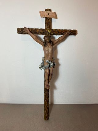Cristo / Crucifijo de escuela de Olot. Preciosa imagen realizada en estuco y cruz arbórea inspirado en el Cristo de la Expiración (Cachorro de Triana). Ojos de cristal. No tiene sello de Olot. Está en perfecto estado, como puede comprobarse. La cruz mide 60cm de largo X 30cm de ancho. El Cristo mide de cabeza a pies 29cm y de mano a mano 25cm. Realizo envíos. Semana Santa, Hermandad, hermandades, señor, Jesús, cofradía, oratorio, iglesia, arte sacro, antigüedades, artesacro, virgen, dolorosa, Corona