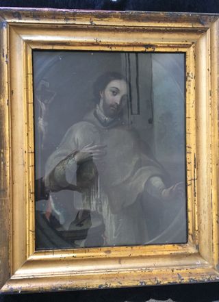 Antiguo Retablo Religioso de Madera y Lienzo Pinta