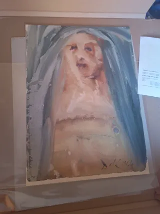 Litografía original Virgen firmada por Salvador Dalí en 1964. Una pieza única para coleccionistas. - Obra de arte firmada en la placa - Año de creación: 1964. - Técnica: Litografía. Litografía original de la Biblia ilustrada de Dalí. Salvador Dali (1904-1989) Plange, Virgo, Accincta Sacco Litografía coloreada original de 1967 Firmado en la placa Tamaño: 48,5 x 35 cm Referencias: - Campo 69-3 (2-18) - Michler & Lopsinger 1600 Esta litografía es parte de la Biblia Sacra, ilustrada por Salvador Dalí y publicada por Rizzoli, Milán, en 1967. Certificado de autenticidad Se envía bien protegido