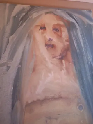 Óleo original Virgen María con el Niño Jesús – 125 × 89 cm Pintura al óleo original, estilo clásico-realista, representando a la Virgen María con el Niño Jesús. Obra pintada a mano, firmada Arizmendy C. y fechada 27/04/2004. Destaca por su cuidada técnica, suaves veladuras y clara inspiración renacentista. Pieza ideal para parroquia, capilla, institución religiosa o coleccionista de arte sacro. • Técnica: óleo sobre lienzo • Medidas: 125 × 89 cm • Estilo: realista clásico • Estado: muy bueno • Obra única, no reproducción Precio: 1.300 € (negociable de forma razonable). Se puede ver sin compromiso.