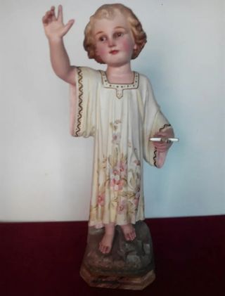 Antigua imagen del Niño Jesús bendiciendo. PROCEDENTE DEL ARTE SACRO FRANCÉS. Se le puede datar a finales del siglo XIX. Realizado en pasta de madera ojos de cristal y policromía al óleo. Excelente estado de conservación como puede apreciarse en las fotos. PRECIO NO NEGOCIABLE MEDIDAS: 32 cm. de altura Base: 10x9,5 cm. A recoger en VALENCIA capital o envío a cargo del comprador: pago por Bizum en envío. ENVÍO POR CORREO CERTIFICADO CON CÓDIGO DE SEGUIMIENTO Y JUSTIFICANTE DE ENVÍO. NO HAGO ENVÍOS POR WALAPOP . MÁS IMÁGENES RELIGIOSAS CONSULTAR MI PERFIL.