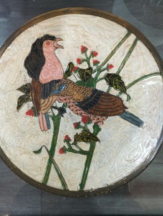 Platos decorativos con arte cloisonné, técnica tradicional de esmaltado sobre metal, con diseños únicos y coloridos. Cada pieza presenta motivos florales, animales o abstractos, realizados con gran detalle y vivos contrastes. Material: metal esmaltado con bordes metálicos ✔️ Técnica: cloisonné (esmalte vitrificado sobre compartimentos de hilo metálico) ✔️ Estilo: oriental, artístico, coleccionable ✔️ Estado: excelente conservación, sin golpes ni grietas ✔️ Ideal para: decoración de pared, vitrinas, coleccionistas o amantes del arte artesanalMedidas de los 2 primeros 20cm, el tercero son 15cm. 💰PRECIO POR UNIDAD