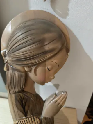 Figura decorativa de estilo Ferrandiz, representando a una niña rezando. La pieza está elaborada con un acabado que imita la madera. - Diseño detallado. - Tonos tierra y rosados. vintage restaurado talla ropa mudanza Salón comedor retro Nike deporte clásico mueble diseño viaje colegio espejo regalo regala chollo cortinas lámpara mochila mesillas mesa Iphone televisor coche bicicleta Pandora zara LeroyHistoria prensa periódicos estudiante periodismo televisión Mudanza radio Revista arte Fotografía flash cámara vídeo cassette cinta Objeto,.