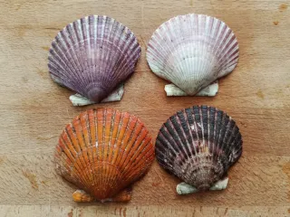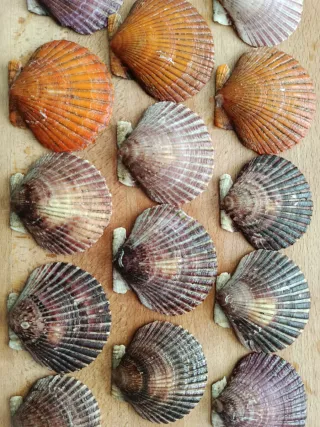 Conjunto de 24 conchas de vieira, perfectas para decoración o manualidades. - Variedad de colores naturales, incluyendo naranjas, morados, blancos y marrones. - Textura acanalada característica. - Ideales para proyectos de arte o ambientación marina.