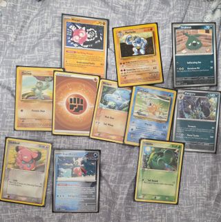 Lote de 100 cartas de Pokémon, ninguna repetida. Hay 15 energías aparte de las 100 cartas que son de regalo con el pedido - Incluye cartas de Minior, Trubbish, Machoke, Machop, Wooper, Magikarp, Pangoro, Snubbull, Iron Bundle y Treecko. - Algunas cartas muestran arte de energía y ataques.