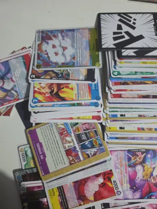 Lote de cartas del juego de cartas coleccionables de One Piece. Incluye una selección variada de cartas. - Cartas de soporte y eventos. - Diseños y arte de alta calidad.