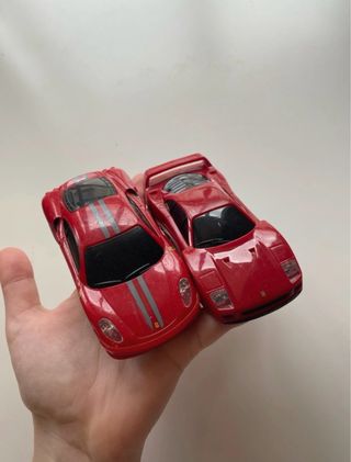Dos coches de juguete a escala de Ferrari en color rojo. De preferencia envíos con InPost. A partir del 12 de diciembre cierro el perfil por vacaciones, así que tenerlo en cuenta si queréis comprar algo.