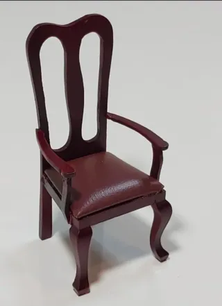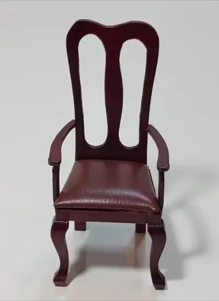 Sillón Reina Ana miniatura. S XVIII. Inglaterra, 1702-1714 Sillón de estilo inglés, de madera oscura imitando a caoba y tapizado imitando cuero. Sillón con patas anteriores cabrioladas de amplia rodilla y patas posteriores ligeramente arqueadas. Éstas se prolongan en dos montantes que se abren para formar un alto respaldo. Se rematan con un copete de doble curva del que desciende una cartela hasta el asiento. Los brazos están levemente retraídos y se apoyan en sendas ménsulas. Medidas aproximadas: 5x4x9'5cm Más #sillasysillonesminiatura en mi perfil.