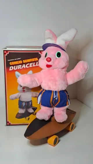 Conejo duracell edición limitada surfista, vintage años 80. Ideal coleccionistas. Nuevo, en perfecto estado en su caja original. 37cm aprox. Tiene movimiento, funciona perfectamente con 3 pilas pequeñas AA.