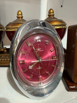 PRECIO POR PRIVADO OFERTAS RAZONABLES Despertador vintage con un diseño futurista de los años 60. - Esfera de color rosa. - Carcasa metálica cromada. - Mecanismo de 2 joyas. Mobiliario diseño italia japan tokio interior