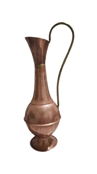 Elegante florero de cobre con un diseño clásico y un asa curva. Altura 40cm.