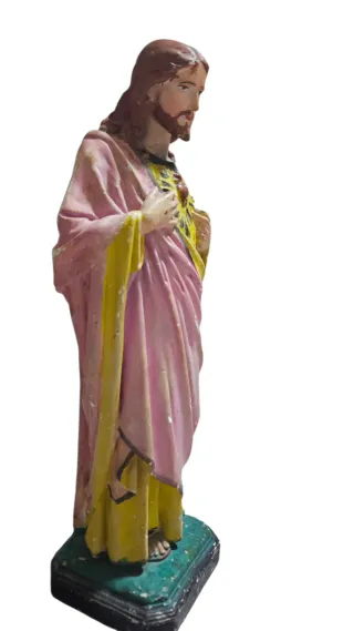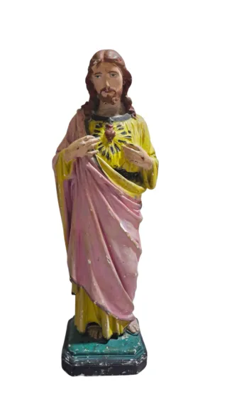 Antigua Figura religiosa del Sagrado Corazón de Jesús. Altura 42cm.