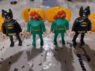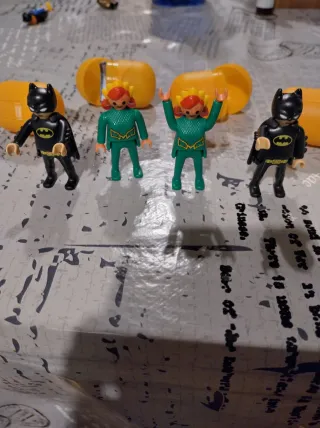 Figuras de Playmobil de Batman y mera personajes, provenientes de huevos sorpresa. 1€ la unidad - Incluye dos figuras de Batman. - Incluye dos figuras de personajes femeninos con pelo rojo y traje verde. - Se venden o cambian.