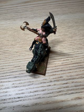 Figura de un asesino de elfos oscuros, ideal para coleccionistas o jugadores de Warhammer. - Detallado diseño de elfo oscuro. - Incluye armas y capa. - Base texturizada.