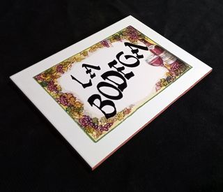 SE HACEN ENVÍOS Y LOTES Azulejo cerámico de medidas 20x25 cm con el texto La Bodega, ideal para decorar bares, restaurantes, bodegas, terrazas y vinotecas. Dispone de colgador, imagen indeleble, se puede poner en exteriores. Se hacen envíos. Entrega en mano en Ávila capital. Más cuadros, azulejos y artículos para regalo y decoración sobre el vino en mi perfil. Se preparan lotes para ahorrar gastos de envío.