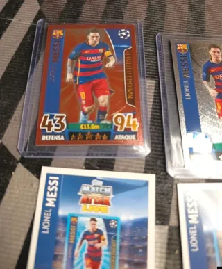 Se venden dos cromos de Lionel Messi de la colección Match Attax Champions. 2015 16 - Cromo de Messi Plata. - Cromo de Messi Bronce. - Incluyen códigos para Match Attax Live.