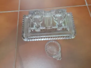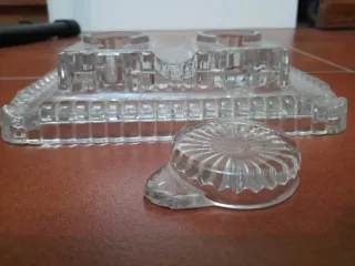 Tintero antiguo de cristal tallado