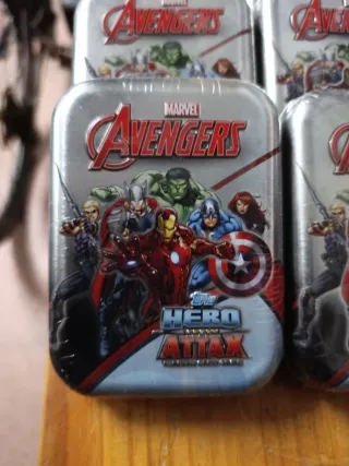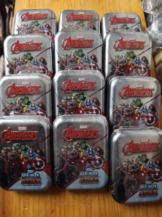 Lote de 12 latas metálicas con diseño de Los Vengadores. Cada caja contiene 24 cards - Ideal para coleccionistas. - Diseño de Marvel Avengers.