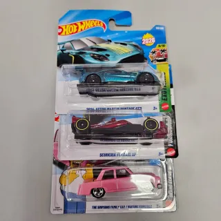 Pack 3 Hot Wheels: Aston Martin, Ferrari, Simpsons