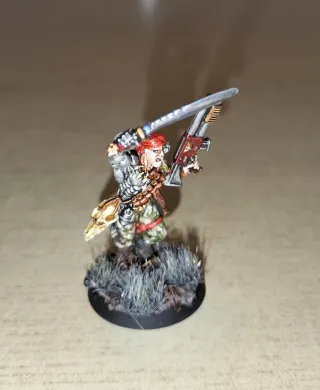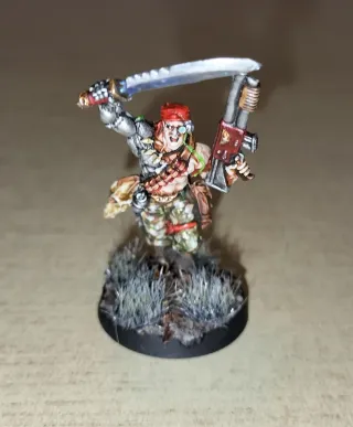 Figura del Coronel Straken, también conocido como Mano de Hierro, del Astra Militarum. Tropas de jungla de Catachan. - Detallada miniatura de metal. - Incluye arma de fuego y cuchillo. - Base escénica con vegetación.