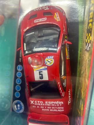 Coche de Scalextric, modelo Peugeot 307 WRC de SCX. Edición especial OPEN DE LAS MERINDADES