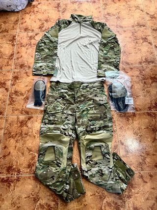 PRECIO NO NEGOCIABLE. Uniforme completo Crye Precision Custom original del ejército británico. Parte de arriba talla XL R nueva a estrenar. Pantalones 34 R con 3 usos escasos como nuevos, con el codigo del soldado y grupo sanguíneo. Pack de rodilleras nuevas Airflex y coderas G2 nuevas Crye Precision muy dificiles de conseguir y caras. Todo casi a estrenar no hay uniformes en este estado de conservacion.
