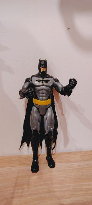 Pack de dos figuras de acción del personaje Batman. - Figura de Batman con traje gris y amarillo. - Figura de Batman con traje negro y amarillo.