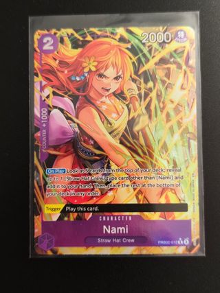 Carta de personaje Nami del juego de cartas coleccionables One Piece. - Tipo: Personaje. - Nombre: Nami. - Franquicia: One Piece. - Código de carta: PRB02-012. - Arte alternativo Envío protegido y rápido