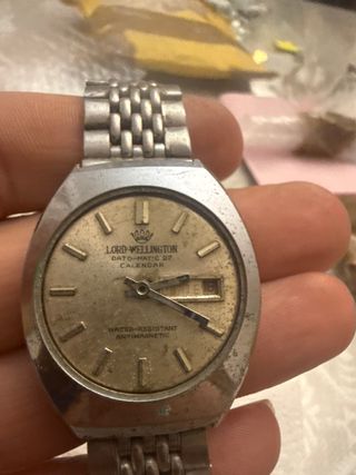 Reloj de pulsera Lord Wellington automático con 27 rubíes y calendario. - Esfera dorada. - Correa metálica. - Resistente al agua y antimagnético. - Sin cristal ni corona