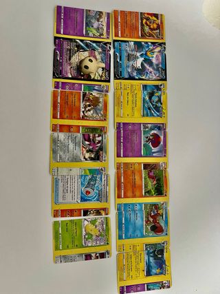 Lote de cartas Pokémon con un interesante error de corte, lo que las hace únicas. - Incluye cartas de varios Pokémon. - Ideal para coleccionistas que buscan piezas especiales. Se ve claramente que varias cartas están mal cortadas y muestran partes de otras cartas, algo que buscan coleccionistas de misprints. Incluye cartas como Empoleon V y otras cartas variadas del Pokémon TCG. Estado general bueno. Ideal para coleccionistas o fans de cartas con errores de impresión.