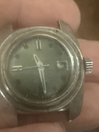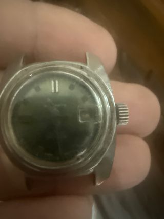 Reloj automático con esfera oscura. - Caja de metal. - Corona estriada. - Para reparar