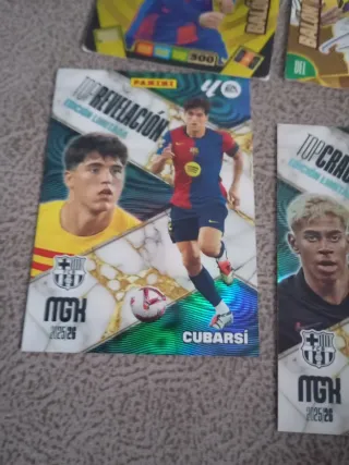 Colección de cartas de fútbol Panini FC Barcelona. - Incluye 3 cartas firmadas. - 7 cartas VIP. - 1 carta de élite. - Cartas de la temporada 2025/26.