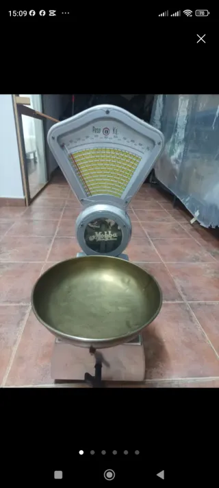 Balanza antigua de la marca Force con capacidad de 2 kg. Ideal para coleccionistas o para dar un toque vintage a tu hogar. - Los platos no son originales y no le quedan perfectos por eso vendo a ese precio - Está pintada en plata con una pintura anti oxido - Es muy antigua. - Diseño clásico de dos platillos. - Fabricada en metal resistente.