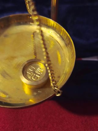 Balanza romana antigua de latón, ideal para decoración o coleccionismo. - Material: Latón - Diseño: Colgante con cuenco y brazo. - Estilo: Vintage - Falta pilón